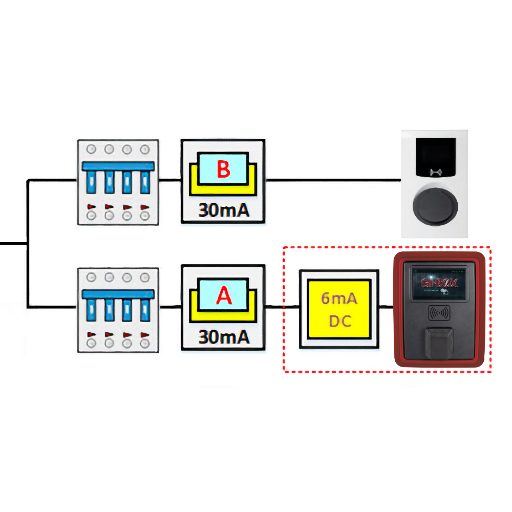 GI-BOX is standaard uitgerust met DC-foutstroom detectie zodat u kunt volstaan met een type A aardlekschakelaar.