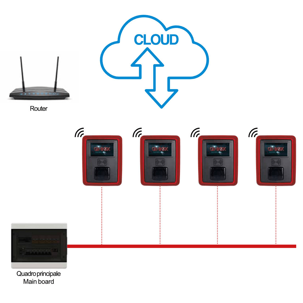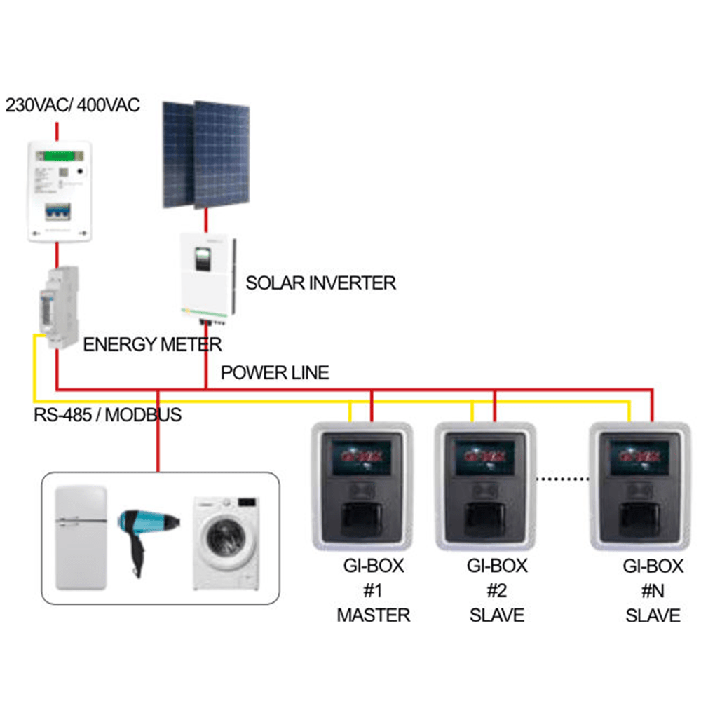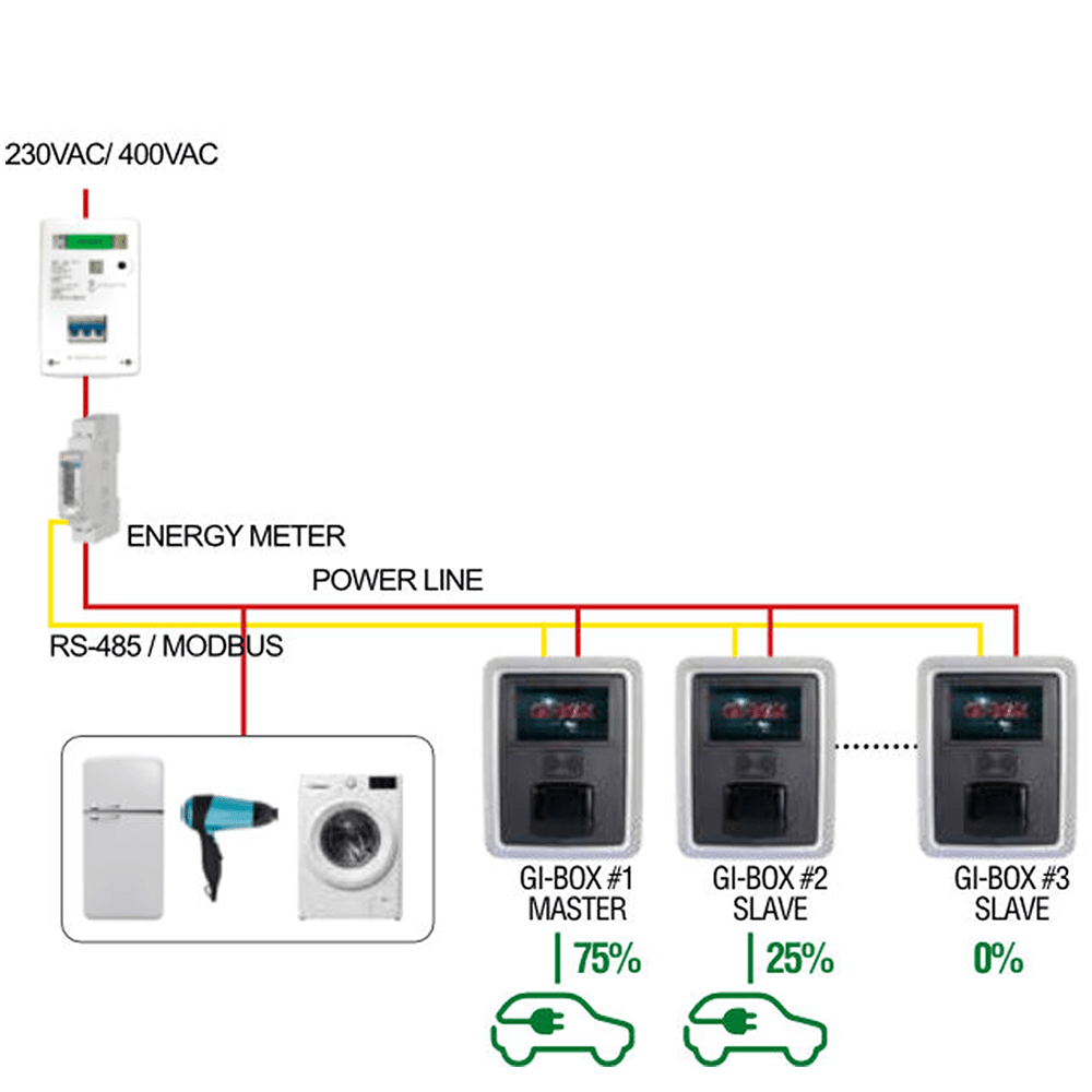 Bij meerdere GI-BOX’en wordt het vermogen verdeeld of kan prioriteit worden gegeven voor snellere oplaadtijden.