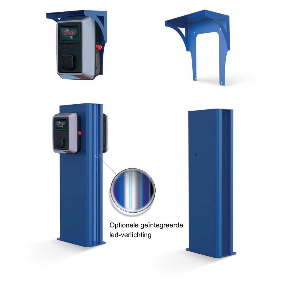 Tevens leverbaar; een aluminium zuil die de installatie van twee wandboxen mogelijk maakt. Een geïntegreerde led-verlichting is optioneel verkrijgbaar.